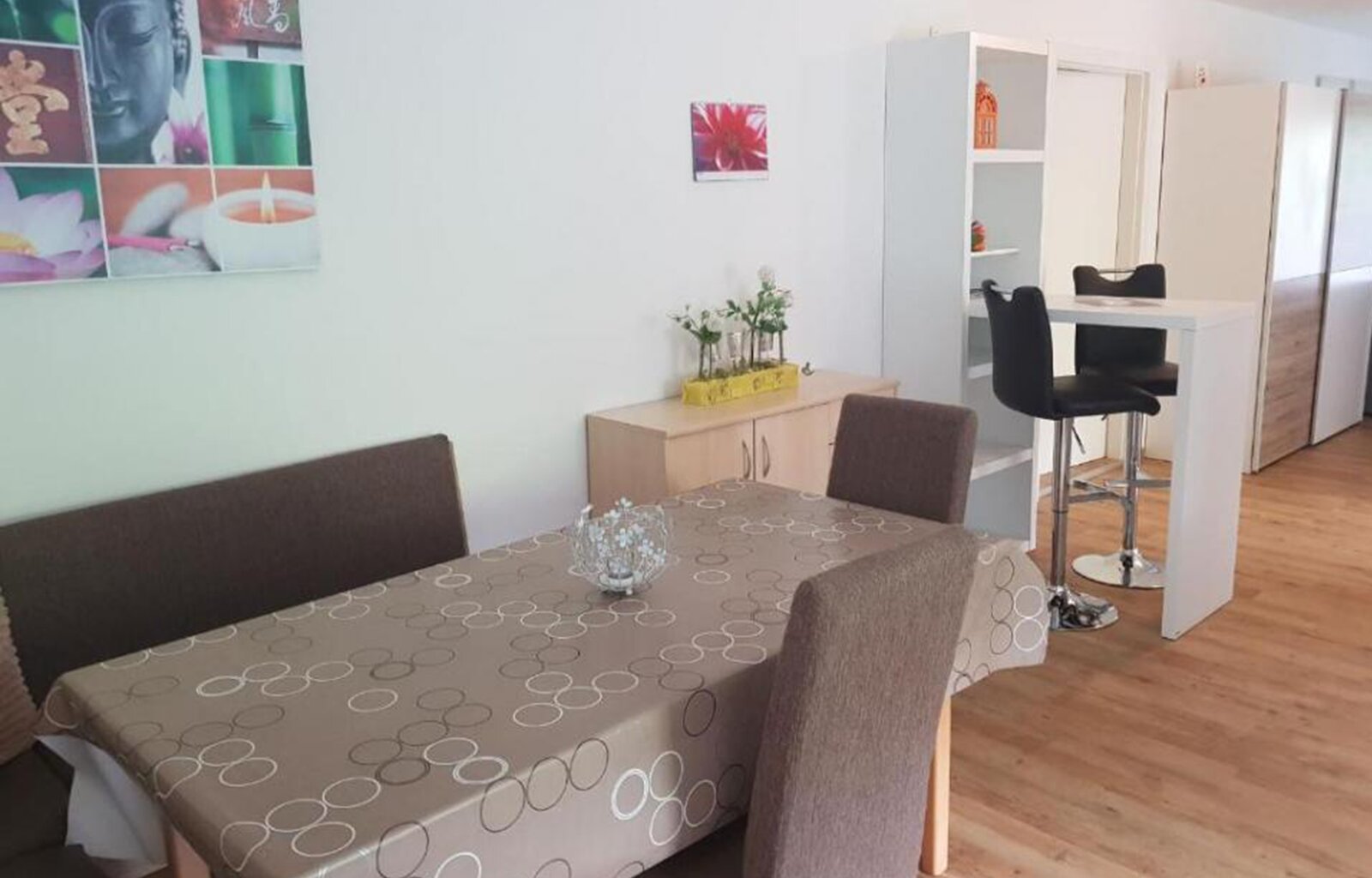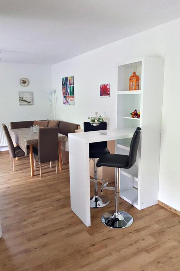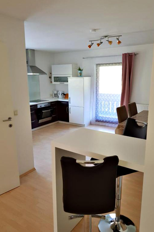 Unser großzügiges Appartement in Ramsau bietet auf ca. 90 m² Platz für bis zu fünf Personen. Es erwartet Sie eine voll ausgestattete Küche mit E-Herd, Backrohr, Mikrowelle, Geschirrspüler, Kaffeemaschine, Wasserkocher und Toaster – ideal für Selbstversorger. Eine gemütliche Sitzecke sowie eine stylische Kaffeebar runden den Wohnkomfort ab.